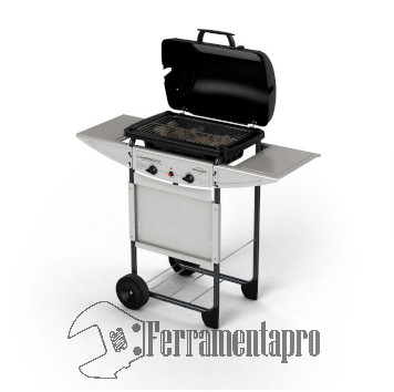 Il coperchio permette di creare condizioni simili ad un forno, metodo perfetto per arrostire ad esempio lo spiedo e la griglia smaltata impedisce alla carne di aderire alla griglia. Questa tipica smaltatura è utile per prevenire anche la ruggine e può essere tranquillamente lavata in lavastoviglie. In definitiva, questo barbecue comprende: Efficienza energetica, struttura in acciaio, due bruciatori in acciaio, griglia cromata, coperchio con vetro e termometro, e ripiani laterali pieghevoli.