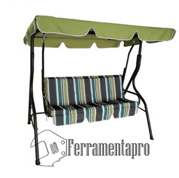 Inoltre, i cuscini e lo schienale in poliestere da 180 gr/mq sono una vera delizia per il relax. Con la loro imbottitura di alta qualità, offrono un sostegno ottimale per il tuo corpo, permettendoti di rilassarti completamente e di goderti momenti di puro piacere. I cuscini e lo schienale presentano un’elegante combinazione di righe verdi e moka, che si integrano perfettamente con il design complessivo del dondolo, aggiungendo un tocco di vivacità e stile.