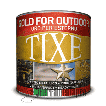 La doratura per esterni della TIXE è una vernice a base di resine sintetiche, pigmentata con bronzo in polvere, nelle diverse tonalità. Pronta all’uso. Ideale per decorazioni di cancellate monumentali, ringhiere ed elementi architettonici in genere, esposti alle intemperie.