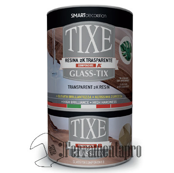 Grlass-Tix della Tixe è una resina trasparente bicomponente destinata alla creazione di pavimentazioni, all’incapsulamento di superfici piane, alla protezione di decorazioni da interno. Grazie alla particolare fluidità e alle proprietà autolivellanti, Glass-Tix è indicata per la posa di pavimentazioni trasparenti di spessori elevati (fino 1-2 cm per strato) altamente resistenti e aderenti alla superficie. L’elevata trasparenza, la facilità di disareazione, ed un tempo di indurimento molto esteso, rendono ottimale Glass-Tix per l’incapsulamento e la congiunzione di materiali inerti di varia natura (legno, metallo, materiale cementizio) al fine di creare un piano continuo o articoli d’arredo tridimensionali attraverso l’impiego di appositi stampi.