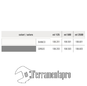 - Essiccazione: 5 ore fuori impronta, 12 ore in profondità.