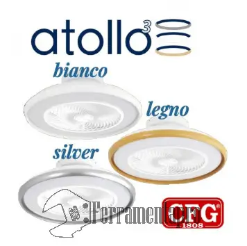 Il ventilatore a soffitto con deflettore Atollo 3 di CFG è il perfetto connubio tra eleganza e funzionalità. Con i suoi 3 anelli arredo intercambiabili nei colori legno, bianco e silver, questo ventilatore si adatta facilmente a qualsiasi stile di arredamento, sia classico che moderno. Ogni anello offre un tocco unico al tuo spazio, trasformando l’aspetto della stanza in pochi semplici passi. La versatilità di questo ventilatore a soffitto per arredo non ha eguali, permettendoti di personalizzare il tuo ambiente secondo il tuo gusto e le tue esigenze estetiche.